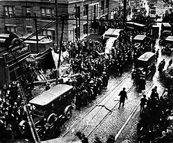 On December 24, 1917, a speeding train lost control coming out of the Mount Washington Tunnel and flipped over onto the heavily-crowded Carson Street.[2] Over twenty people lost their lives, and over 80 were injured in the accident. It was the first documented accident in the history of Pittsburgh's public rail transit, and the deadliest mass-transit incident in the city's history.[3]
