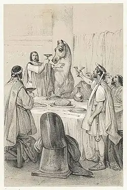 Cassius Dio (165–235 AD) indicated that the horse was attended by servants and was fed oats mixed with gold flake,[2] and that Caligula made the horse a priest.[3]