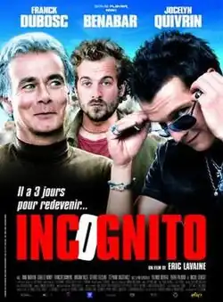 Incognito is a 2009 French comedy film directed by Éric Lavaine. Starring Bénabar, Franck Dubosc, Jocelyn Quivrin. The film was released on April 29, 2009.