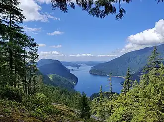 ![]() A southward view of Indian Arm, taken along the Dilly Dally Loop trail. | |
