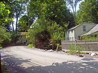 In 1804, the Highlands Turnpike, a more level alternative route to the Post Road currently followed by US 9, was opened. At the hamlet, it deviated slightly from the current alignment, following Indian Brook down to a four-way junction known as the Bend, where a now-abandoned roadway went south over the brook to rejoin the road still in use.[2]