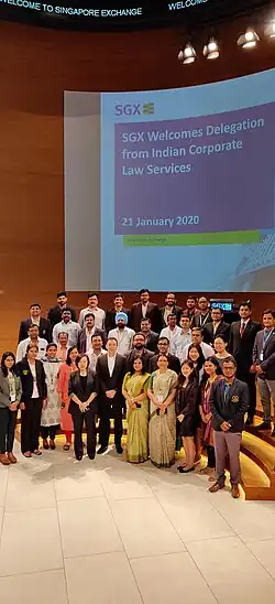 - The Officers also undergo a 2-3 week foreign study tour at National University of Singapore Faculty of Law, wherein a wide range of topics relating to international & comparative corporate law with a particular focus on Singaporean Corporate laws, regulations and practices are covered. The officers visit Singapore Exchange for understanding its role as a market regulator; the Singapore International Arbitration Centre and NUS Business School. To provide greater insight from industry practitioners, NUS Law also invites expert speakers from the private sector to engage with the officers on subjects such as international financings and Indian Companies, Indian Companies & their interaction with international capital markets other critical regulatory matters.[6]