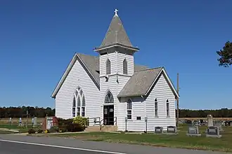 Indian Mission Church is a historic Methodist church located near Millsboro, Sussex County, Delaware. It was built in 1921, and is a one-story, wood-frame building covered with clapboard siding and in the Late Gothic Revival style. It features a two-story hipped roof tower and lancet windows. The congregation was organized in 1881 from the Harmony Church after the strongly Native American families of the Nanticoke Indian Association separated after the hiring of an African American minister.[2][3]