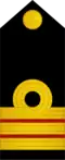 | Lieutenant | Junior officer rank; takes on division and technical duties | Junior executive Officer, OOD, Divisional Officer, Pilot, Assistant technical officer, ATC officer | 52 years | — | Level 10B | |