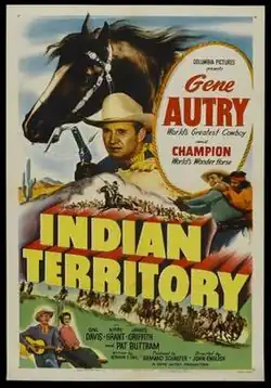 Indian Territory is a 1950 American Western film directed by John English and written by Norman S. Hall. The film stars Gene Autry, Gail Davis, Kirby Grant, James Griffith, Philip Van Zandt and G. Pat Collins. The film was released on September 30, 1950, by Columbia Pictures.[1][2][3]
