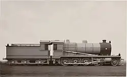 First catalogued by the BESA in their 1907 report on British Indian standard locomotive designs, this goods locomotive design appeared alongside the 4-4-2 and 4-6-0 mail engines and the 2-6-4T tank engine in the same report.[7] In the same report, three different tenders were to be paired with the tender engines, which were two three-axle tenders with a water capacity of 3000 and 4000 gallons, and a 4500 gallon two-bogie tender with two axles for each bogie.[7]