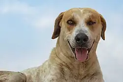 The Indian pariah dog, South Asian pariah dog,[6] or Desi Kutta,[4][7] is a landrace of dog native to the Indian subcontinent.[5] They have erect ears, a wedge-shaped head, and a curved tail. It is easily trainable and often used as a guard dog and police dog.[8][9] This dog is an example of an ancient group of dog known as pye-dogs. There is archaeological evidence that the dog was present in Indian villages as early as 4,500 years ago.[10]