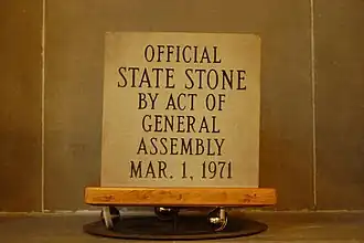 - ^ a b State Stone/ Block of limestone, official state stone, has been installed in Statehouse. Indianapolis Star. March 5, 1983. p 19, c 4.