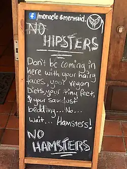 Humorous "no hipsters" sign at the entrance to a bar in Cape Town