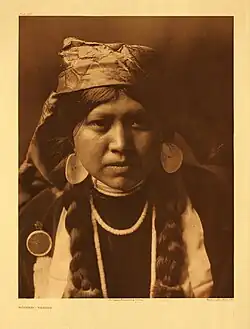 Plateau people wore many types of clothing which changed over time. In the northern region, the women wore buckskin shirts, breech cloths, leggings, and moccasins, and the men wore longer shirts. Winter clothing was made out of rabbit, groundhog, or other animals' fur. Along the Columbia River among the Chinook and Sahaptin, both men and women typically wore just a breech cloth in warm weather. A short robe or cape and leggings would be added in cooler weather. Below the Cascades Rapids women wore grass skirts.[15][9] Women on the southern plateau wore basketry hats. Over time, plateau people generally adopted clothes inspired by plains culture, including buckskin dresses and feathered headgear.