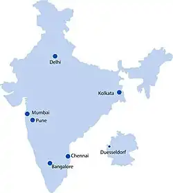 The Indo-German Chamber of Commerce has representations in India and Germany. In India, IGCC is present at 6 locations. Headquartered in Mumbai, IGCC’s branch offices are located in Delhi, Chennai, Pune, Kolkata, Bangalore. The German subsidiary is located in Düsseldorf.[17]