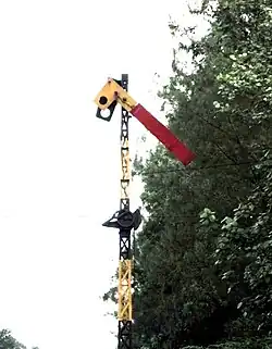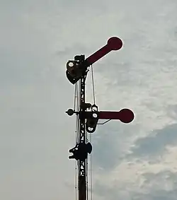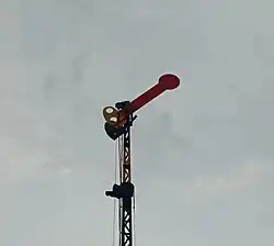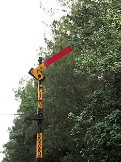 | The Semboyan 9D is a fixed signal in the form of a mechanical repeater signal indicating the exit signal, and must be able to rotate 90 degrees. There are two possibilities: