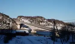 The Indre Sunnan Bridge (Norwegian: Indre Sunnan bru) is a cantilever bridge in Bodø Municipality in Nordland county, Norway. It crosses a strait between the island of Straumøya and the village of Tuv on the mainland. The Saltstraumen strait and its famous maelstrom lie just a short distance to the northeast. The bridge is 360 metres (1,180 ft) long and the main span is 165 metres (541 ft).[1]