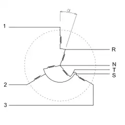 If the rotor terminals are connected to a three-phase electric power network, a rotating magnetic field will be driven into the magnetic core. The resulting flux will produce an emf on the windings of the stator with the particularity that if rotor and stator are physically shifted by an angle α, then the electric phase shifting of both windings is α too. Considering just the fundamental harmonic, and ignoring the shifting, the following equation rules: