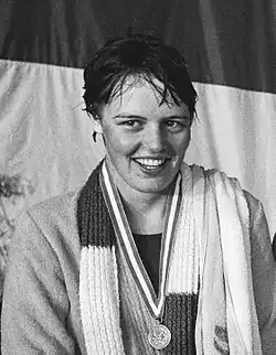 Ineke Yvonne Ran (born 20 April 1962, in Badhoevedorp) is a former freestyle and butterfly swimmer from the Netherlands, who competed for her native country at the 1976 Summer Olympics in Montreal, Quebec, Canada. She was eliminated in the preliminaries for 100m and 200m freestyle and 100m butterfly. She swam in the preliminaries for the Dutch relay team that ended up in fifth place in the 4 × 100 m medley. As part of the freestyle team she was 4th in the 4 × 100 m relay, together with Enith Brigitha, Linda Faber and Annelies Maas.[1] She won two medals at the 1977 European Aquatics Championships, bronze in 100m butterfly and silver 4 × 100 m freestyle relay.[2]
