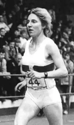 At the start of 1986, she defended her national indoor title over 3000 m and set an under-23 indoor world best for the 2-mile run,[1] finishing in a time of 9:34.27 minutes in New York City.[5] This remains the German national record for that event.[6] The greatest feat of her career came that February, as she won the gold medal over 3000 m at the 1986 European Athletics Indoor Championships – the only East German woman ever to win that title.[7] After this victory she won a 1500/3000 m double at the national outdoor championships.[2] A third straight East German indoor 3000 m title came in 1987, but this was the last high level achievement of her briefly flourishing career.[1]