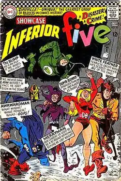 The Inferior Five (or I5) are a parody superhero team appearing in books by the American publisher DC Comics. Created by writer E. Nelson Bridwell and artist Joe Orlando, the team premiered in the DC Comics title Showcase #62 (May-June 1966).[1]