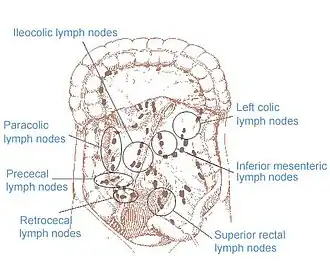 {{cite book}}: CS1 maint: location missing publisher (link) CS1 maint: others (link) - ^ Kim, J.C.; Lee, K.H.; Yu, C.S.; Kim, H.C.; Kim, J.R.; Chang, H.M.; Kim, J.H.; Kim, J.S.; Kim, T.W. (2004). "The clinicopathological significance of inferior mesenteric lymph node metastasis in colorectal cancer". European Journal of Surgical Oncology. 30 (3): 271–279. doi:10.1016/j.ejso.2003.12.002. PMID 15028308.