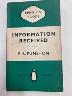 Information Received is a 1933 mystery crime novel by the British writer E. R. Punshon.[1] It is the first in his series of thirty five novels featuring Detective Constable Bobby Owen of Scotland Yard, replacing his previous series of five novels featuring Inspector Carter published between 1929 and 1932. It was reviewed by Dorothy L. Sayers.[2]