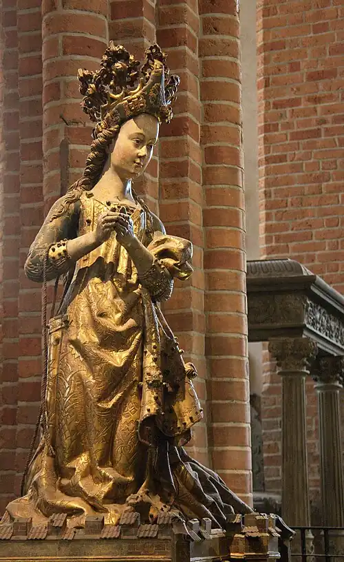 The Princess in the group of sculptures Saint George and the Dragon in Storkyrkan in Stockholm, which were made in 1471–1475, is considered to bear the features of Ingeborg.[1]