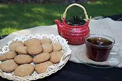 Ingefærnøtter, or ginger nuts, are a Norwegian cookie known for their spiced taste, utilizing ginger, cinnamon, nutmeg, cardamom, and black pepper in their recipes.[1] They are frequently baked during Christmastime in regions throughout Norway as one of the syv slag, or "seven kinds (of christmas cookies)", served.[2]