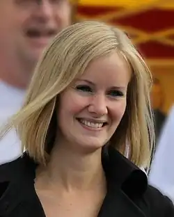 Hansen's political career began in the Youth of the Christian People's Party (KRFU), the youth wing of the much greater Christian Democratic Party (KRF). After her future husband stepped down as leader of the KRFU in 2002, Hansen was elected deputy representative to the Parliament of Norway from the Vestfold constituency, and served from 2001 to 2005.[3] A young and active member at the time, she was promoted to leader of the party's youth wing, the KRFU, with her predecessor Per Steinar Osmundnes being elected to Parliament later that year. In 2007, Hansen was appointed to second Deputy Leader by Chairman Dagfinn Høybråten, and was coined as one of the rising stars within the Christian Democratic Party. She was re-elected to that position at the party congress in early 2009.[4] Later that same year, Hansen competed in the Vestfold constituency during Norwegian parliamentary election for a seat in Parliament, but due to strong competition from the Norwegian Labour Party and the Progress Party, Hansen was not elected. However, she continues to serve as second Deputy Leader of the KRF.