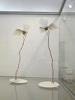 Among his most well-known designs are the winged bulb Lucellino (1989)[4] and Porca Miseria! (1994),[5] a suspension lamp made with porcelain shards. From the early 1980s on Maurer worked with a team of younger designers and developers.