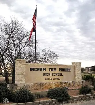 Ingram Tom Moore High School is a small public high school in Ingram, Texas, USA serving grades 9–12. It is the only high school in the Ingram Independent School District, and is attended by students from West Kerr County. Built in 1976, ITMHS opened in 1980 as the first school in west Kerr County and was named at the request of Tom Moore, who donated the land it rests on today.