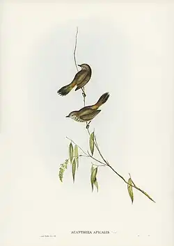 - ^ Gould, John (1848). "Acanthiza apicalis, Gould., Western Acanthiza, [Pl. 57]". The Birds of Australia. 3. doi:10.5962/p.313088.