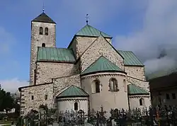 Innichen Abbey (German: Stift Innichen) is a former Benedictine monastery in Innichen, South Tyrol in northern Italy. Founded in the 8th century, its collegiate church dedicated to Saint Candidus, rebuilt in the 12th–13th centuries, is considered the most important Romanesque building in Tyrol and the Eastern Alps.[1][2] It is home to a 13th-century sculpture and a fresco cycle from the same age in the dome.