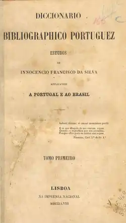 - ^ a b c d Teixeira de Vasconcelos, António Augusto (April 1862). "Innocencio Francisco da Silva". Revista Contemporanea de Portugal e Brazil (in Portuguese). Lisboa: Escriptorio da Revista Contemporanea de Portugal e Brazil. Retrieved 8 January 2019.