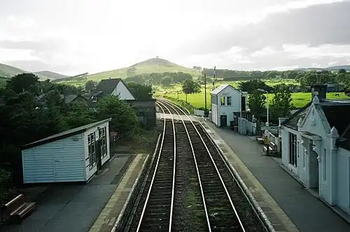 ![]() View from Insch railway station looking west towards Hill of Dunnideer (2004) | |||||