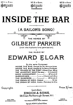 ”Inside the Bar" is a song written in 1917 by the English composer Edward Elgar, with words by Sir Gilbert Parker.