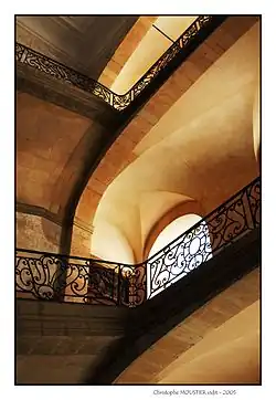 The other staircase (also before renovation) in the Hotel-Dieu featuring a bust of Henri Fabre -