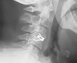 An interbody fusion cage (colloquially known as a "spine cage") is a prosthesis used in spinal fusion procedures to maintain foraminal height and decompression. They are cylindrical or square-shaped devices, and usually threaded. There are several varieties: the Harms cage, Ray cage, Pyramesh cage, InterFix cage, and lordotic LT cage, all of which are made from titanium; the Brantigan cage, made from carbon fibre; and the Cortical Bone Dowel, which is cut from allograft femur. The cages can be packed with autologous bone material in order to promote arthrodesis.[1] Such implants are inserted when the space between the spinal discs is distracted, such that the implant, when threaded, is compressed like a screw. Unthreaded implants, such as the Harms and Pyramesh cages have teeth along both surfaces that bite into the end plates.[1]