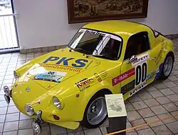 During 1961–1963, the Apollo GT body was developed by Intermeccanica for International Motor Cars, a company based in Oakland, California. There was one aluminium prototype completed by Intermeccanica. The company then supplied body/chassis units in steel to International Motor Cars; final assembly was done by IMC, using the new Buick aluminium V8 engine and all Buick running gear. The cars were upholstered in leather and used Borrani wire wheels. Altogether 77 coupés (including the original alloy prototype and a 2+2 prototype) and 11 convertible Apollos were built between 1961 and 1965.[3] In 1963 Intermeccanica exhibited the Apollo coupe at the Turin Automobile Show.