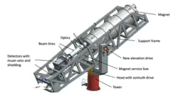 While the design is an ongoing process, the conceptual design of BabyIAXO was published in 2021.[15] It will consist of a 10 m long magnet with 2 bores and 2 detection lines equipped with an X-ray optic and an ultra-low background X-ray detector each.