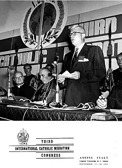 In 1951, German, Italian, and American laity and clergy – most notably Pope Pius XII, the Secretary of State Archbishop Giovanni Battista Montini (the future Pope Paul VI), Mr. James J. Norris and Cardinal Josef Frings – initiated the International Catholic Migration Commission (ICMC). The following year, Pope Pius XII formally established ICMC through a papal letter, Exsul Familia,[2] which brought worldwide attention towards the needs of migrants and invoked the support of the Catholics to welcome and assist foreign nationals fleeing their home countries.