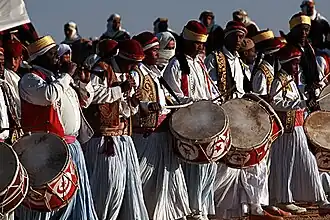 In the evening, groups from visiting countries perform songs and dances. The central event is the poetry contest run by the desert poet, Abdellatif Belgacem.[2][3]