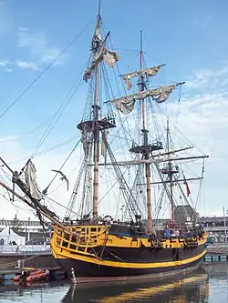 The International Festival of the Sea was held at H.M. Naval Base, Portsmouth between 24 and 27 August 2001.[1] It was the third in a series of International Festivals of the Sea held in the United Kingdom since 1996. The event allowed people to walk around the Naval Base, to go on board many of the visiting vessels, including several vessels belonging to the Royal Navy. It also allowed people to visit the historic dockyard, including HMS Victory and Mary Rose. There were also many maritime displays, street entertainers, military bands, music concerts and unique shops.