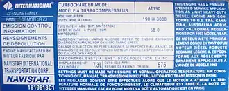 ![]() Valve cover sticker from International-Navistar AT190 7.3 liter turbo-diesel engine as installed in 1994 Ford F-350 | |