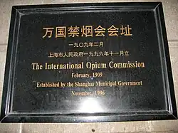The International Opium Commission was a meeting convened on February 1 to February 26, 1909, in Shanghai that was one of the first steps toward international drug prohibition.