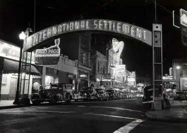 International Settlement was a relatively short lived entertainment district within San Francisco, located along a one block stretch of Pacific Avenue between Kearny and Montgomery Streets, whose popularity lasted from 1939 to 1960.