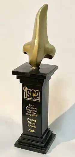 Every year at the ISCA Convention (ISCAcon), all of the participants vote for the best caricature artist of the year, upon several other categories, and award the Golden Nosey: [8]