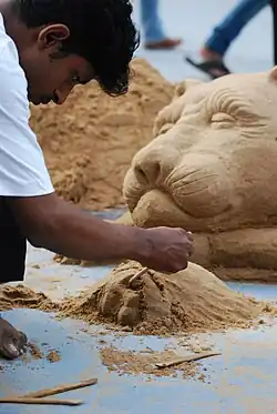 Indian sand artist Sudarshan Patnaik created a sculpture in memory of the victims of the tsunami disaster in Puri, south of the capital of the Indian state of Odisha, Bhubaneshwar. The determination of this man, support, and a consorted effort from his friends in Puri, culminated in the formation of the Golden Sand Art Institute 1995. The institute is an open-air institute with no boundaries and limitations. It is located on the seashore that spans between Hotel May Fair Beach Resort and the Panthanivas in Puri.[4]
