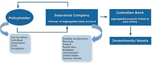 EWP protects assets with segregated account legislation by using the benefits of life insurance. This structure uses asset protection laws in the jurisdictions of residence to shield these assets from creditors' claims.[10] A trust with its own asset protection provisions can still receive additional protection with the policy.[11]