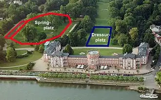 Internationales Pfingstturnier Wiesbaden, a horse show at Schlosspark Biebrich in Wiesbaden, dates back to 1929.[1] It is run by the Wiesbadener Reit- und Fahr-Club (WRFC).[2] In the beginning, it was held at different locations. After World War II, Wilhelm Gustav Dyckerhoff suggested to use the Schlosspark Biebrich, and the first Pfingstturnier there was held in 1949. The event has traditionally been sponsored by the Dyckerhoff family. Competitions are held in dressage, show jumping, eventing and vaulting. [1]