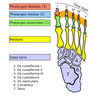 ![]() Bones of the foot. Interphalangeal joints highlighted (orange background area) | |