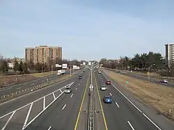 Interstate 291 (I-291), also known as the Springfield Expressway,[3] is a 5.44-mile (8.75 km) auxiliary Interstate Highway in Massachusetts that links I-91 in downtown Springfield with I-90 (Massachusetts Turnpike) in Chicopee. I-291 is roughly a northeast–southwest highway. It merges with I-91 at its southwestern terminus, via a flyover. The road meets the turnpike at its northeastern terminus. Getting onto the turnpike from I-291 is straightforward, but getting from the turnpike to I-291 requires a left turn at an at-grade traffic signal. I-291 travels directly through highly populated areas of Springfield and passes under several overpasses. From its southwestern terminus to exit 5A, I-291 is concurrent with US Route 20 (US 20).