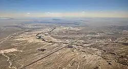 The highway traverses more of the Navajo Reservation and the Cibola Forest before turning southeast and crossing a malpaís. After serving interchanges near Grants, the freeway, coinciding with the northern boundary of El Malpais National Monument, crosses another malpaís, turns east, and enters the Acoma Indian Reservation, home of the Acoma Pueblo. The route leaves the Acoma Indian Reservation with Mt. Taylor to the north and enters the Laguna Pueblo. Near the interchange with State Road 6 (NM 6), the railway line that accompanies much of the route from the Arizona border diverts to the south while the freeway turns east by northeast toward Albuquerque. The route departs the Laguna Pueblo, briefly transits the Tohajiilee Indian Reservation (a chapter of the Navajo Nation), crosses the Rio Puerco, and begins a steep climb to the top of a mesa marked by several small cinder cones overlooking the Rio Grande rift and Albuquerque.